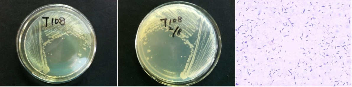 | Morphological Description | Colony round;light yellow;steamed bun shaped;edge neatly;bright;sticky;Waxed;Rod;having spore;Bacteriophage telogen |