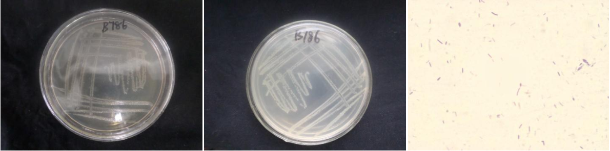 | Morphological Description | Colony round;clam white;Finely toothed and convex edge、flat in the middle;multifold;slippy;sticky;Waxed;Rod;having spore;Mesophilic budding spore |
