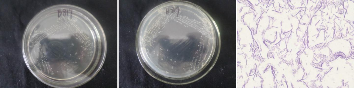 | Morphological Description | Colony round;Lychee flesh white;edge serrated;Slightly concave in the middle;multifold;slippy;sticky;thin;translucent;Rod;having spore;Mesophilic budding spore |