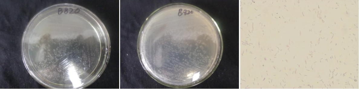 | Morphological Description | Colony round;Lychee flesh white;edge serrated;Slightly concave in the middle;multifold;slippy;sticky;thin;translucent;Rod;having spore;Mesophilic budding spore |