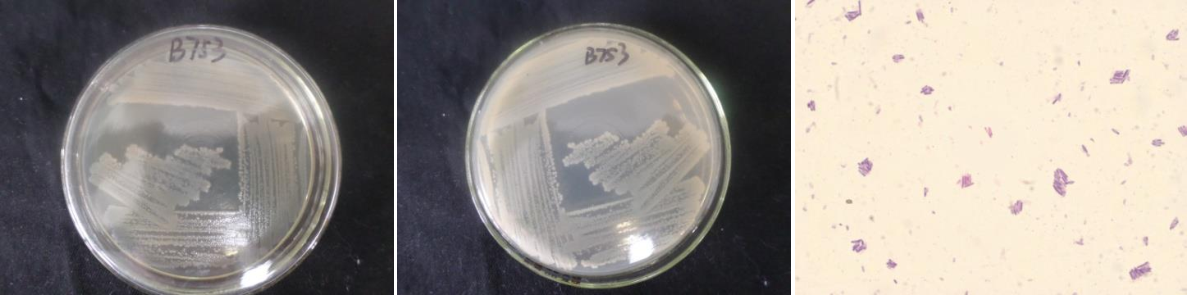 | Morphological Description | The morphology of Colony round;clam white;edge serrated;flat;wrinkled;slippy;sticky;waxy;The morphology of strain:Rod;having spore;terminal spore |