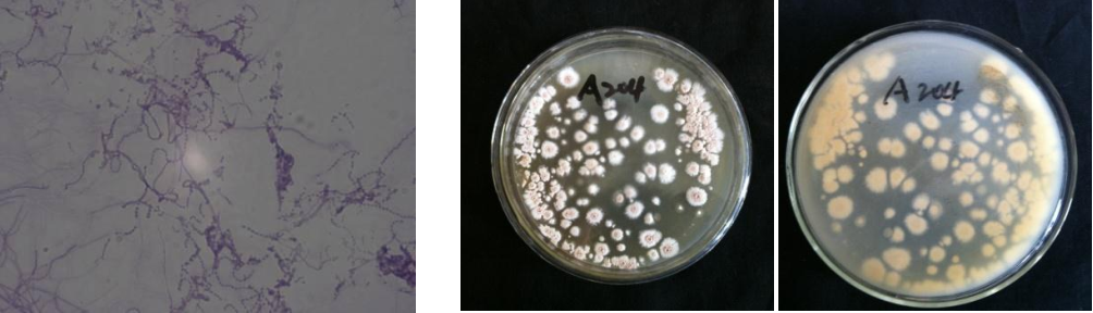 | Morphological Description | hyphae:branched;separated without breaking;filament:long;curled;Spore pile:white clam meat;barrel-shaped or nearly round |
