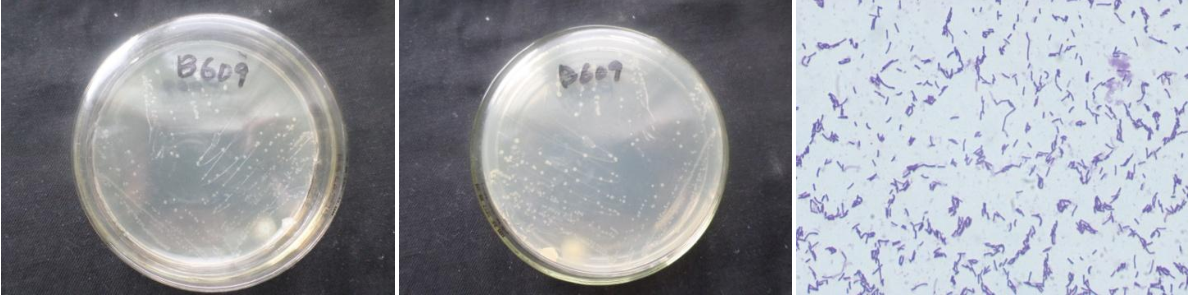 | Morphological Description | Colony round;clam white;edge serrated;Flattened;have concentric rings;multifold;bright;sticky;Waxed:Rod;having spore;Bacteriophage telogen |