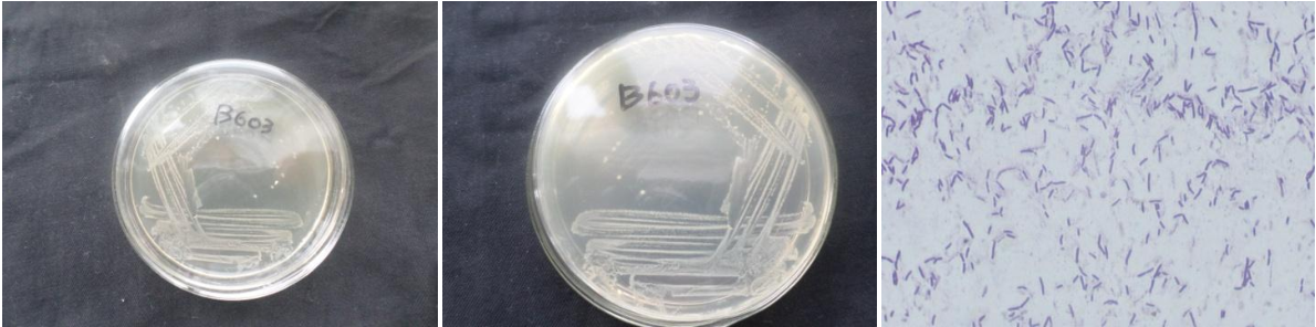 | Morphological Description | Colony round;clam white;edge neatly;steamed bun shaped;Slightly convex in the middle;Fine wrinkle;slippy;sticky:Rod;having spore;Mesophilic budding spore |
