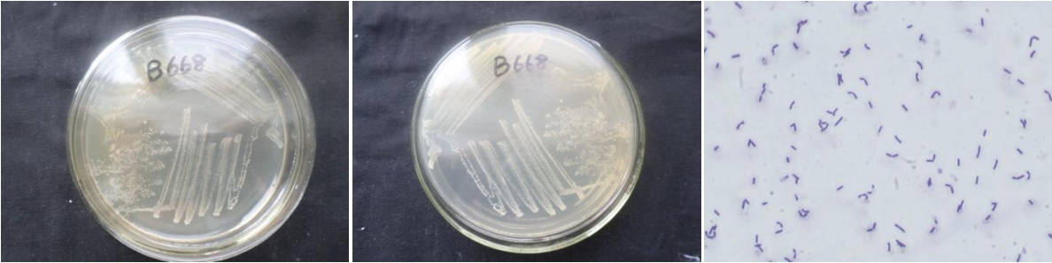 | Morphological Description | The morphology of Colony round;clam white;edge neatly;edge bumps;concave in the middle;slippy;sticky;waxy;The morphology of strain:Rod;having spore;bias in budding spores |