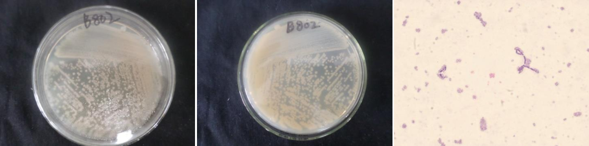 Morphological Description Colony round;clam white;edge serrated;edge bumps;Many wrinkles;slippy;sticky;waxy;strain:Rod;having spore;Spores are intermediate