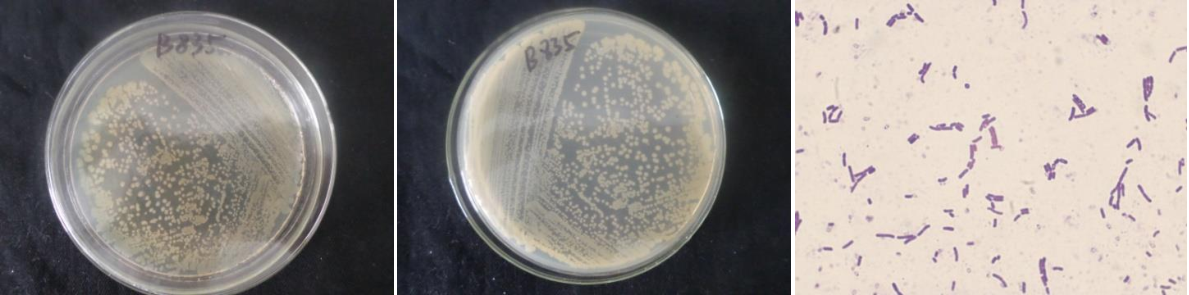 | Morphological Description | Colony round;clam white;edge serrated;Edge slightly convex;concentric ring;center convex;Many wrinkles;slippy;sticky;mucoid;strain:Rod;having spore;Spores are intermediate |