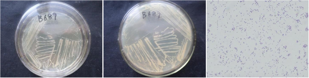 | Morphological Description | Colony round;milky white;edge neatly;steam bun shaped;slippy;sticky;Wax Sample;Bacteriophage Rod-shaped;no spore |