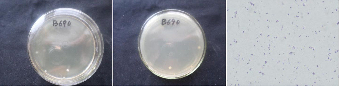 | Morphological Description | Colony round;clam white;edge neatly;steam bun shaped;slippy;sticky;Wax Sample;Bacteriophage Rod-shaped;no spore |