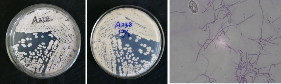 | Morphological Description | Mycelia branch;there are septa not broken;there are bundles of filaments;individual old filaments have expanded part of spore filament spiral or curved;the spores are larger;long round spore pile milk |