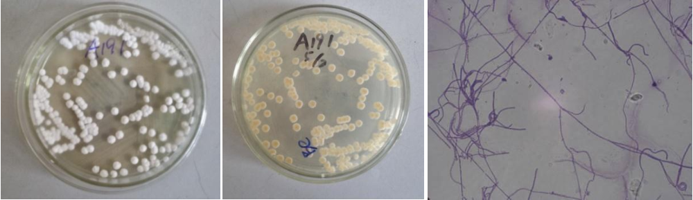 | Morphological Description | hyphae branch;apart;mycelium thicker and shorter;protoplast condensation in old filaments;spore filaments straight or curved;with few spirals;spore barrel or nearly round;spore pile lotus white;back s |